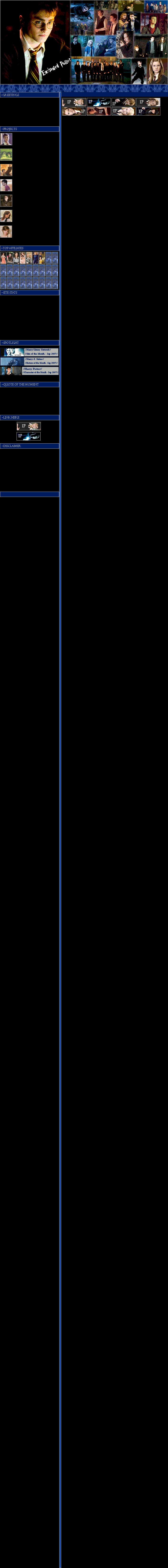 Welcome to Enchanted Potter! A fan site dedicated to bringing you everything that is Potter! Enchanted Potter will be ten times better then it was when it firsted opened and I sort of forgot about it. Please feel free to stop by anytime! :) ~Caressa |